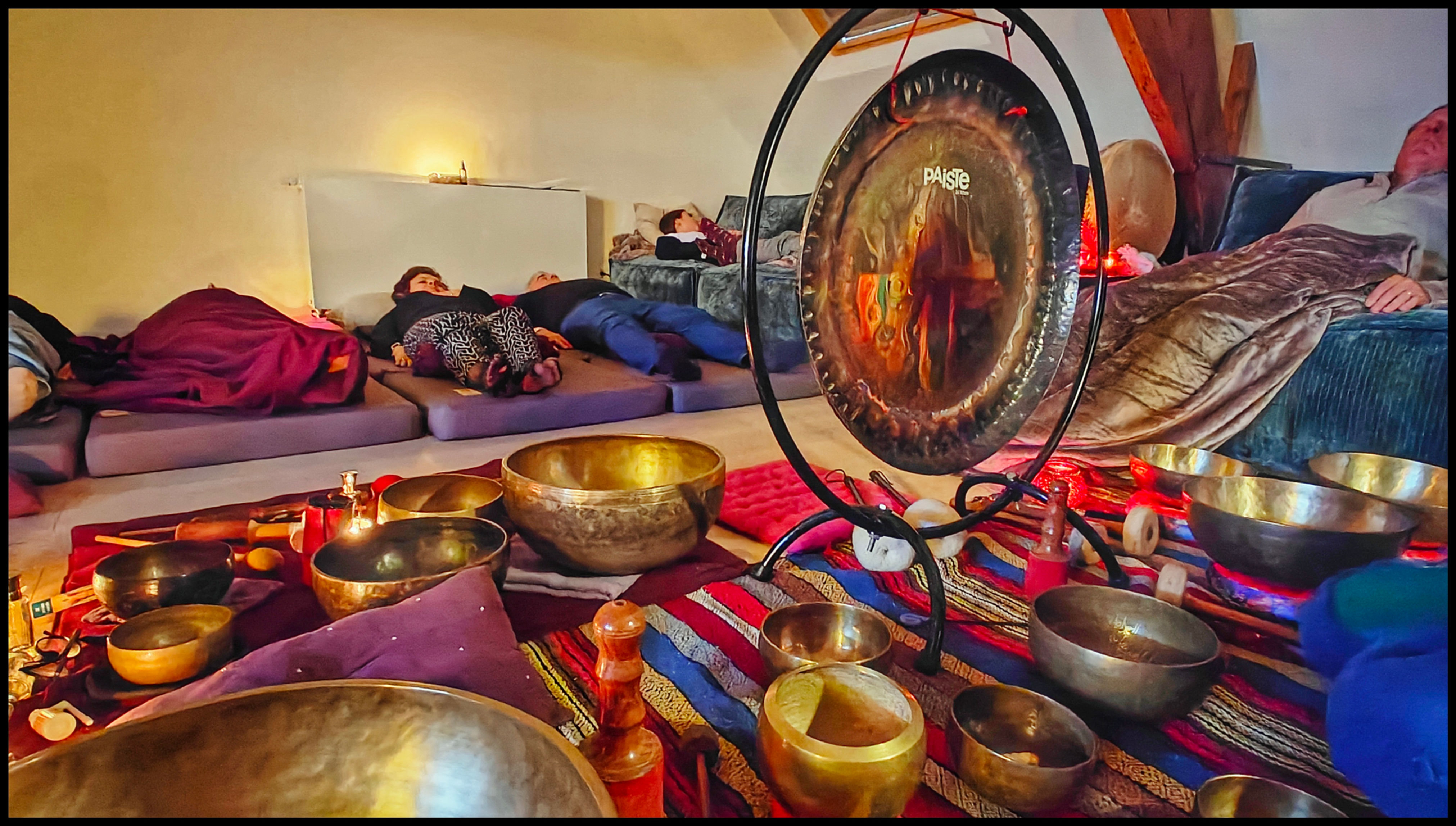 Tijdens een klankmassage worden schalen rond en op jullie beiden geplaatst, gericht op ontspanning.